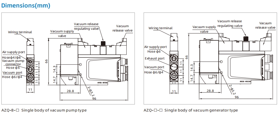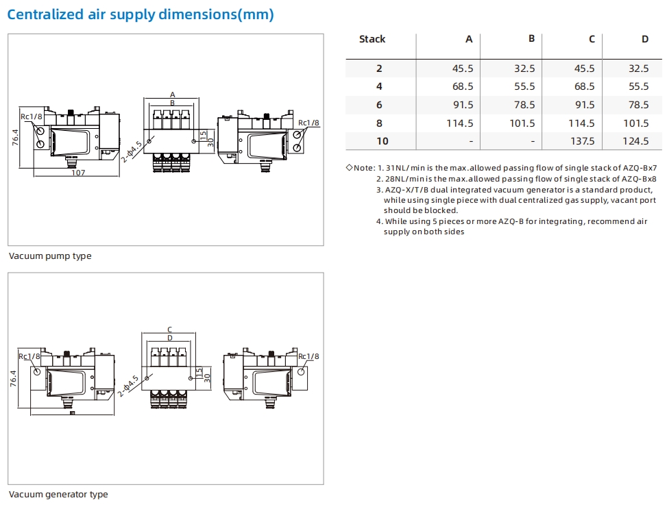 Note: For model AZQ-B-□-□-□-DP,the max. vacuum flow per piece is 15Nl/min